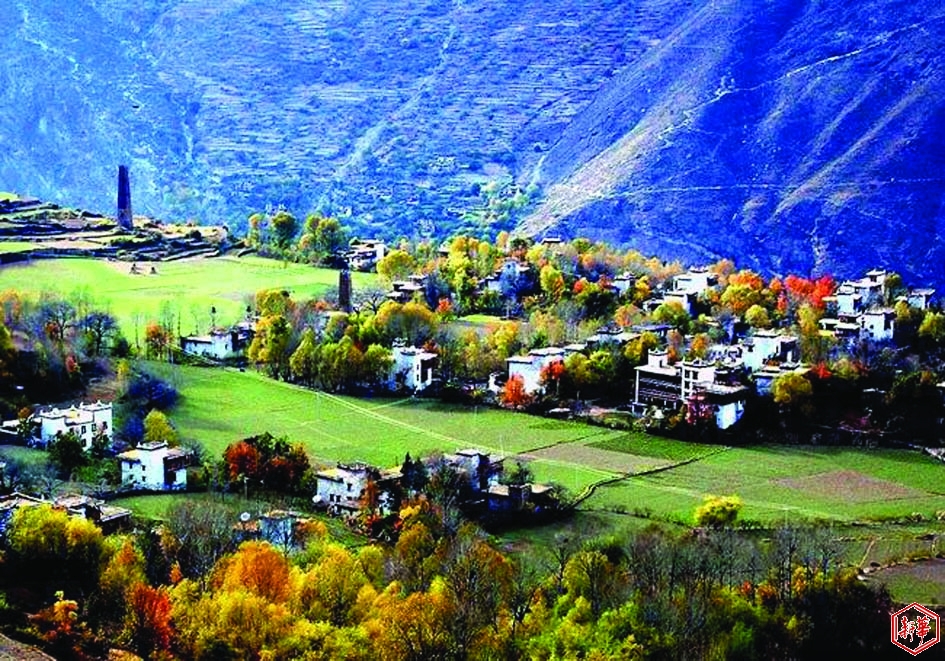 國家地理曾將甲居藏寨評為中國最美的六大鄉(xiāng)村古鎮(zhèn)之首。身臨其境時,才知此言不虛。在金川河峽谷的一面山坡上,百余座依山而建的藏寨像一顆顆翡翠般散落在蓊蓊郁郁的樹叢中,進入村內(nèi),古樹參天,山花爛漫。路旁田旁房前屋后栽滿了核桃樹、蘋果樹、桃樹、梨樹和許多不知名的樹。藏寨建筑一般是兩層或三層,頂層部分從上到下都畫有紅黑白三種色帶,房頂四角都有四個白色尖錐突起,這是加絨藏族的一大特點。這里面朝墨爾多神山,背倚亞拉神山。下面谷底是波浪淘淘的金川河,對面山勢雄峻,半山腰白云縷縷,更有人家隱現(xiàn),一幅“白云深處有人家”的真實映像。這宛如田園牧歌一般的世外桃源,讓人怎能不喜歡!