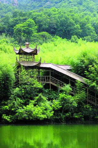 云頂山自然風景區位于海陽市東北10余公里處,盤石店鎮大莊村招虎山主峰一側。周圍群山環繞,層巒疊嶂,谷深壁峭。景區內松竹疊翠,谷幽水碧,60%的山巒依然保持著自然的原生狀態,古木瓜樹、古銀杏樹均有數百年的生命史,被當地村民奉為神樹而世代祭祀。這里夏無酷暑,冬無嚴寒,近千種動植物生機勃勃,尤其是江北最大竹林,生于河主岸山之麓,彌眼俱綠,英氣逼人,洋洋灑灑五百余畝,為景區增添了幾分優雅和寧靜。(張皓 103車間)