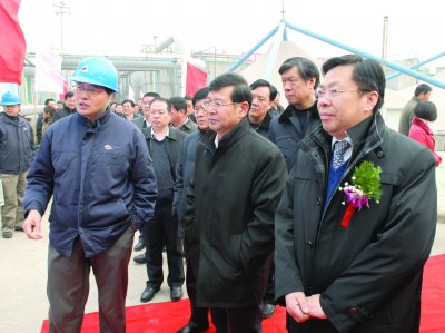 市領(lǐng)導(dǎo)周連華、韓家華、張建祥以及市環(huán)保局、部分相關(guān)企業(yè)領(lǐng)導(dǎo)等為工程正式投運剪彩,我公司董事長張代銘在典禮上介紹了公司廢氣治理、收集輸送等情況。典禮結(jié)束后,張代銘董事長陪同市領(lǐng)導(dǎo)到106車間參觀了廢氣收集輸送現(xiàn)場。