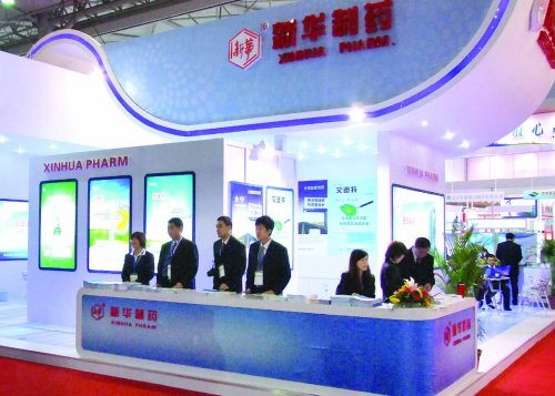 新華制藥從上到下非常重視此次會展,位于制劑展區的特裝展位精心布置、清新亮麗,彰顯出雄厚的企業文化,展示出豐富的產品內涵。公司領導親自坐鎮展位,與來訪客戶親切洽談。新華醫貿市場部和銷售部全體參會人員統一著裝、一絲不茍認真接待,共接待和發放資料20000余人次,記錄招商信息1000余條。展會期間獨家品種和新品種艾迪特、介寧、尼立蘇緩釋膠囊、雷貝拉唑鈉等繼續受到較多的關注。
