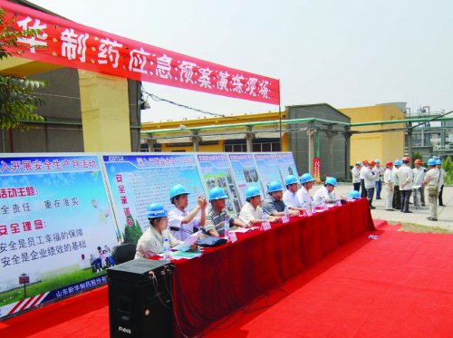 6月21日,新華制藥舉行了公司級應急救援綜合演練,華魯控股集團公司領導劉從德,我公司領導杜德平、王小龍,華魯恒升、魯抗醫藥及我公司各單位安全分管領導和安全員在現場觀摩。演練前保衛部消防隊進行了逃生救援表演,公司消防隊員專業、專注、規范的表演,得到了在場所有觀摩人員的贊賞。上午十點采購物控部東園液體罐區石油醚儲罐火災事故應急救援演練正式啟動,在全體參練人員的共同努力下于十點三十分圓滿結束。