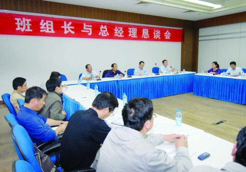 9月15日,2011年度新華制藥班組長(zhǎng)與總經(jīng)理懇談會(huì)在公司七會(huì)議室舉行。懇談會(huì)由公司黨委副書記、紀(jì)委書記、工會(huì)主席徐列主持,新華制藥總經(jīng)理杜德平、副總經(jīng)理竇學(xué)杰、杜德清與來自公司19個(gè)單位的班組長(zhǎng)代表、班工委委員和人力資源部、機(jī)動(dòng)工程部、研究院、安全環(huán)保部等專業(yè)部門的有關(guān)負(fù)責(zé)人一起進(jìn)行了長(zhǎng)達(dá)3個(gè)小時(shí)、面對(duì)面的交流。