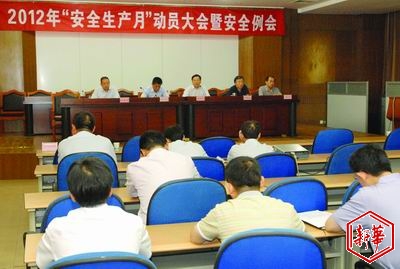 5月31日下午,2012年“安全生產月”及“安康杯”活動啟動大會在公司六會議室召開。公司領導張代銘、任福龍、王小龍、竇學杰、杜德清,集團暨新華制藥各單位、部門、子公司主要負責人、分管負責人、安全員參加了會議。會議由集團公司副總經理王小龍主持。