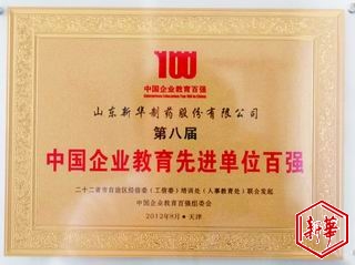 新華制藥榮膺“第八屆中國企業教育先進單位百強”稱號