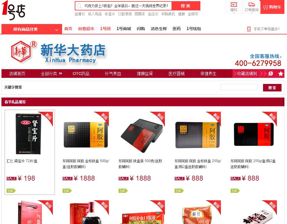 “1號店”新華大藥店旗艦店地址 http://xhdyd.yhd.com/