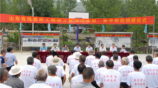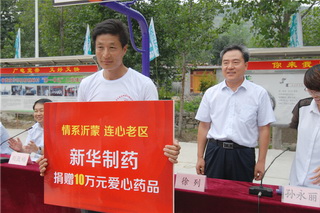 7月22日,飽含著山東新華醫藥集團公司6000余名員工對革命老區人民深情厚誼的10萬元愛心藥品送抵臨沂市費縣馬莊鎮核桃峪村、芍藥山村、順和村。這是新華醫藥參與省委宣傳部“情系沂蒙,連心老區”主題活動中,做出的義舉。省委宣傳部副部長劉致福出席活動儀式并講話。山東廣電網絡有限公司黨委書記、董事長劉保聚,臨沂市委常委、宣傳部長林國華,淄博市委宣傳部副部長傅斌,費縣縣委書記程守田等參加活動,新華醫藥集團公司黨委副書記、紀委書記、工會主席徐列代表公司現場捐藥并發表熱情洋溢的講話。