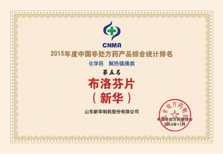 近日,2015年度中國非處方藥產品綜合統計排名公布,新華制藥新華牌布洛芬入選2015年度中國非處方藥產品綜合統計排名(化學藥)解熱鎮痛類第五名。