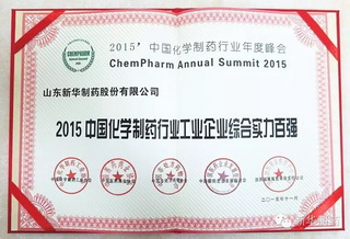 峰會上,新華制藥憑借深厚的底蘊和實力,一舉榮獲“2015年中國化學制藥行業工業企業綜合實力百強”“2015中國化學制藥行業原料藥出口型優秀企業品牌”“2015中國化學制藥行業制劑出口型優秀企業品牌”三項殊榮。