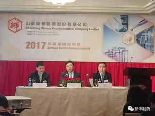 3月26日,山東新華制藥股份有限公司在香港成功舉行2017年度業績發布會,董事長、黨委書記張代銘,總經理杜德平、財務總監侯寧以及董事會秘書曹長求、財務資產部經理何曉洪出席了會議,參加發布會的還有包括基金經理、分析員等約60人。