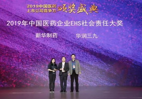 10月9日晚,新華制藥被授予“2019年中國醫藥企業EHS社會責任大獎”!