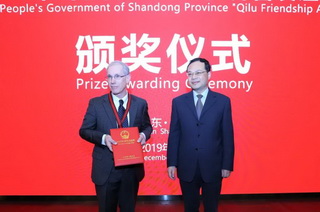 2019年12月10日,“齊魯友誼獎(jiǎng)”頒獎(jiǎng)典禮在山東大廈舉行,新華制藥美國專家William Garvey榮獲2019年度“齊魯友誼獎(jiǎng)”。