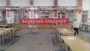 一分廠食堂懸掛條幅,提示職工回崗就餐