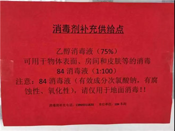 104車間為一分廠辦公樓區(qū)域配備消毒劑