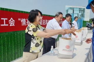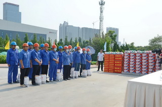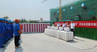 為激發(fā)廣大職工投身“六大賦能”、“十二大攻堅(jiān)行動(dòng)”淄博市重點(diǎn)工程建設(shè)積極性,助力省、市重點(diǎn)工程建設(shè),7月15日下午,冒著炎炎烈日,市總工會(huì)副主席王建華、市能源化工醫(yī)藥工會(huì)主任羅炳英、副主任周紹勇、市總工會(huì)生產(chǎn)部部長(zhǎng)潘新一行4人,來(lái)到新華制藥高端新醫(yī)藥制劑產(chǎn)業(yè)化項(xiàng)目工地現(xiàn)場(chǎng),啟動(dòng)“夏送清涼”活動(dòng),慰問(wèn)淄博市五大重點(diǎn)精品項(xiàng)目之一的新華制藥高端新醫(yī)藥制劑產(chǎn)業(yè)化項(xiàng)目一線建設(shè)者,向該項(xiàng)目建設(shè)者們贈(zèng)送了茶葉、礦泉水、洗漱用品等一批防暑降溫物資,并對(duì)重點(diǎn)工程開展勞動(dòng)競(jìng)賽情況進(jìn)行督導(dǎo)調(diào)研。公司黨委副書記、紀(jì)委書記、工會(huì)主席徐列,發(fā)展規(guī)劃部部分成員和職工代表參加了活動(dòng)。