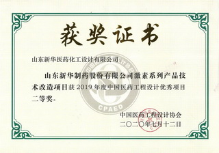 近日,中國醫(yī)藥工程設(shè)計協(xié)會公布了“2019年度全國醫(yī)藥優(yōu)秀工程設(shè)計”優(yōu)秀項目評選結(jié)果,其中山東新華醫(yī)藥化工設(shè)計有限公司承擔設(shè)計的山東新華制藥股份有限公司激素系列產(chǎn)品技術(shù)改造項目,榮獲2019年度全國優(yōu)秀醫(yī)藥工程設(shè)計項目二等獎。