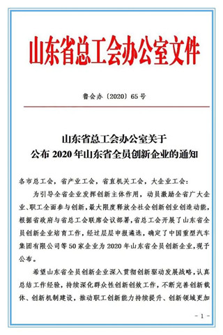 為引導全省企業發揮創新主體作用,動員激勵全省廣大企業、職工全面參與創新,最大限度釋放全社會創新創業創造動能,根據省政府與省總工會聯席會議部署,省總工會開展了山東省全員創新企業培育工作,經過組織推薦、資格審查、專家評審、公眾投票、差額考察、提名公示等層層嚴格遴選程序,歷時近一年,最終命名包括新華制藥在內的50家企業為山東省全員創新企業。