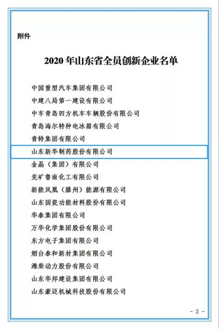 近日,山東省總工會公布了獲得2020年山東省全員創新企業名單,新華制藥榜上有名!