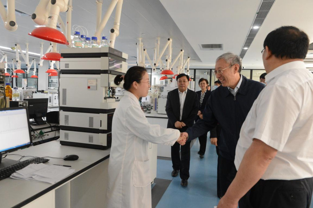 在新藥研發中心,程林一行視察了科研人員的研發現場,詳細詢問了新藥研發情況,親切慰問了科研人員,鼓勵大家要勤于學習、愛崗敬業,專心致志搞研發。尤其是聽到張代銘董事長介紹,公司多個產品通過藥品一致性評價工作后,他鼓勵科研人員要繼續潛心研究、矢志不渝、快速成長、創新發展。程林副主席希望新華制藥繼續引進更多的科研人才,做好研發規劃,提升研發質量,培養更優秀的科研隊伍,創新創造更優質的產品,為醫養健康事業做出新的更大貢獻!