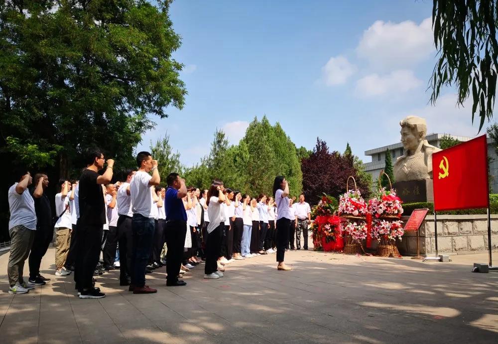 在焦裕祿同志塑像前,新黨員們面對(duì)鮮紅的黨旗宣誓,誓言錚錚,鏗鏘嘹亮,表達(dá)了為共產(chǎn)主義事業(yè)奮斗終生的堅(jiān)定決心。