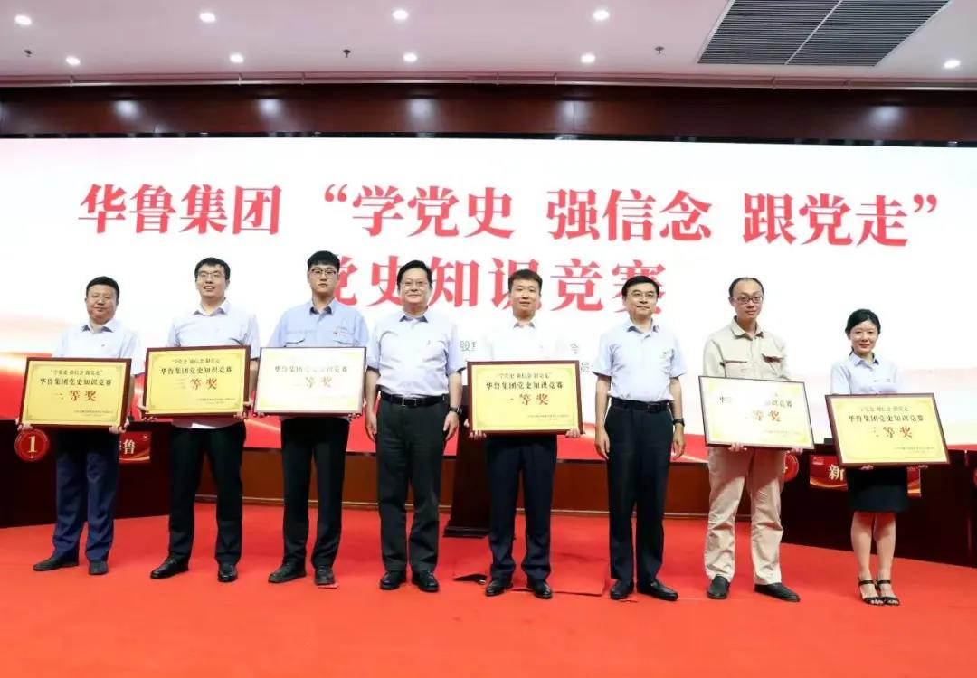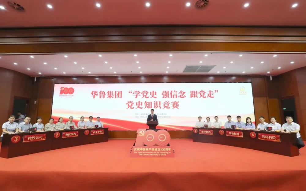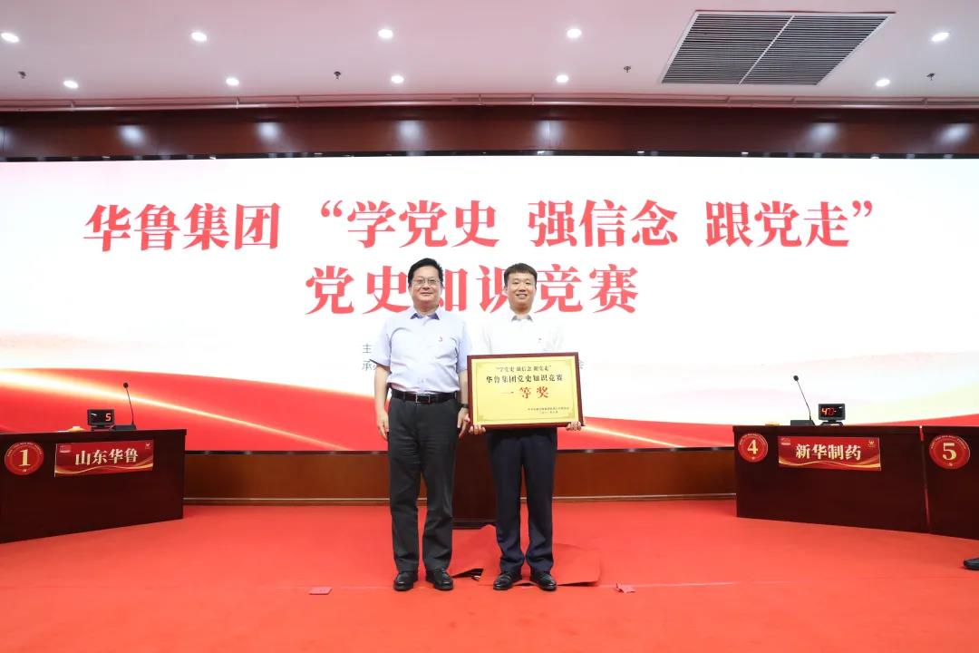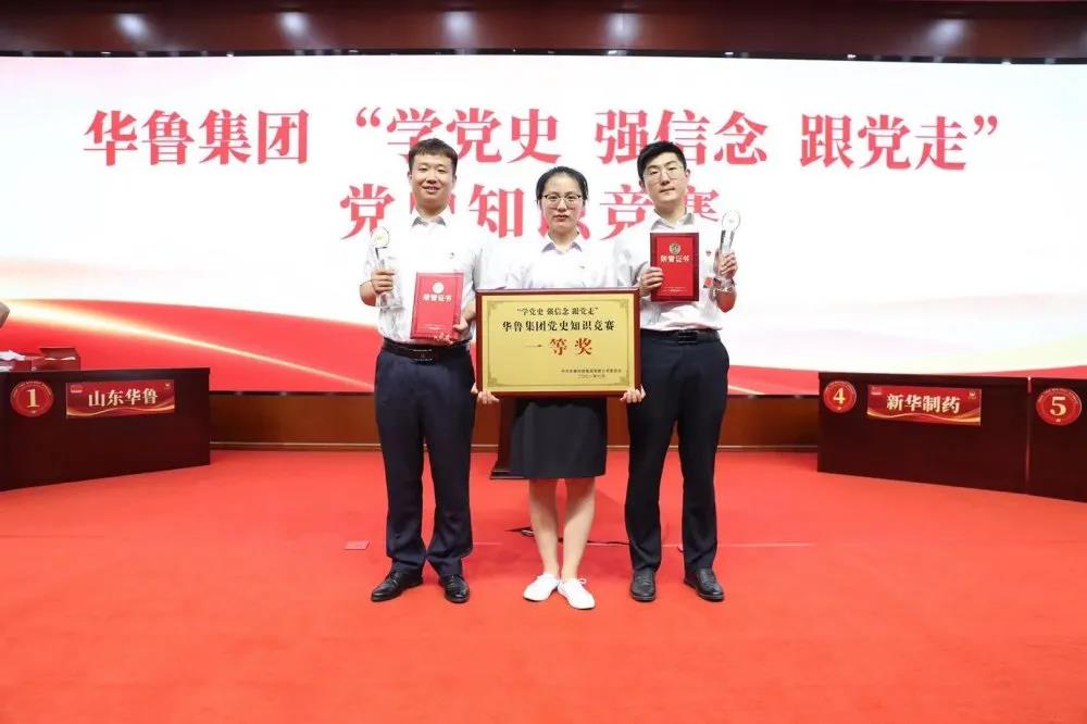 6月25日,華魯集團“學(xué)黨史 強信念 跟黨走”黨史知識競賽在魯抗醫(yī)藥舉行,經(jīng)過激烈的角逐,最終由公司選派的103車間張哲、制劑質(zhì)量保證部韓佳辰、質(zhì)量檢驗部梁素素組成的新華制藥代表隊在六支代表隊中脫穎而出,榮獲一等獎。華魯集團黨委書記、董事長樊軍,黨委副書記、董事丁振波出席活動并為獲獎代表隊頒獎。公司黨委書記、紀委書記、工會主席徐列觀看了此次競賽。