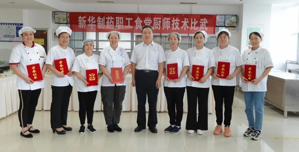 國慶節前夕,新華制藥舉辦2021年度職工食堂技能比武。公司黨委副書記、紀委書記、工會主席徐列來到決賽現場觀摩活動并為獲獎選手頒獎。