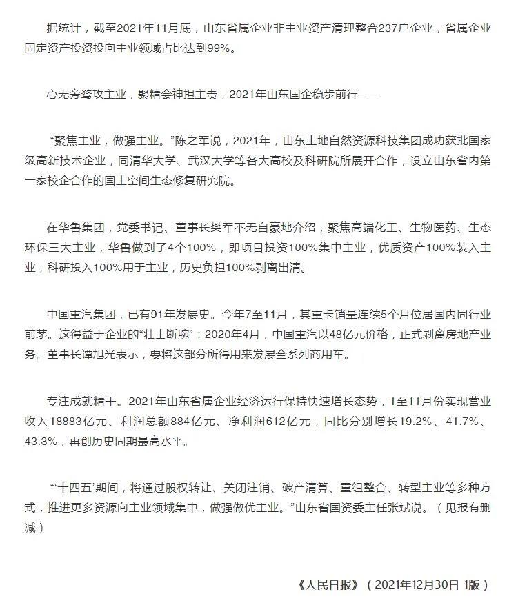 重磅!人民日報頭版頭條點贊山東推動國企做強主業!