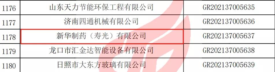近日,高新技術(shù)企業(yè)認(rèn)定管理工作網(wǎng)公布了山東省2021年認(rèn)定的第二批高新技術(shù)企業(yè)進(jìn)行備案的名單,新華制藥(壽光)有限公司首次認(rèn)定通過,被授予高新技術(shù)企業(yè)稱號(hào),證書編號(hào) GR202137005637。
