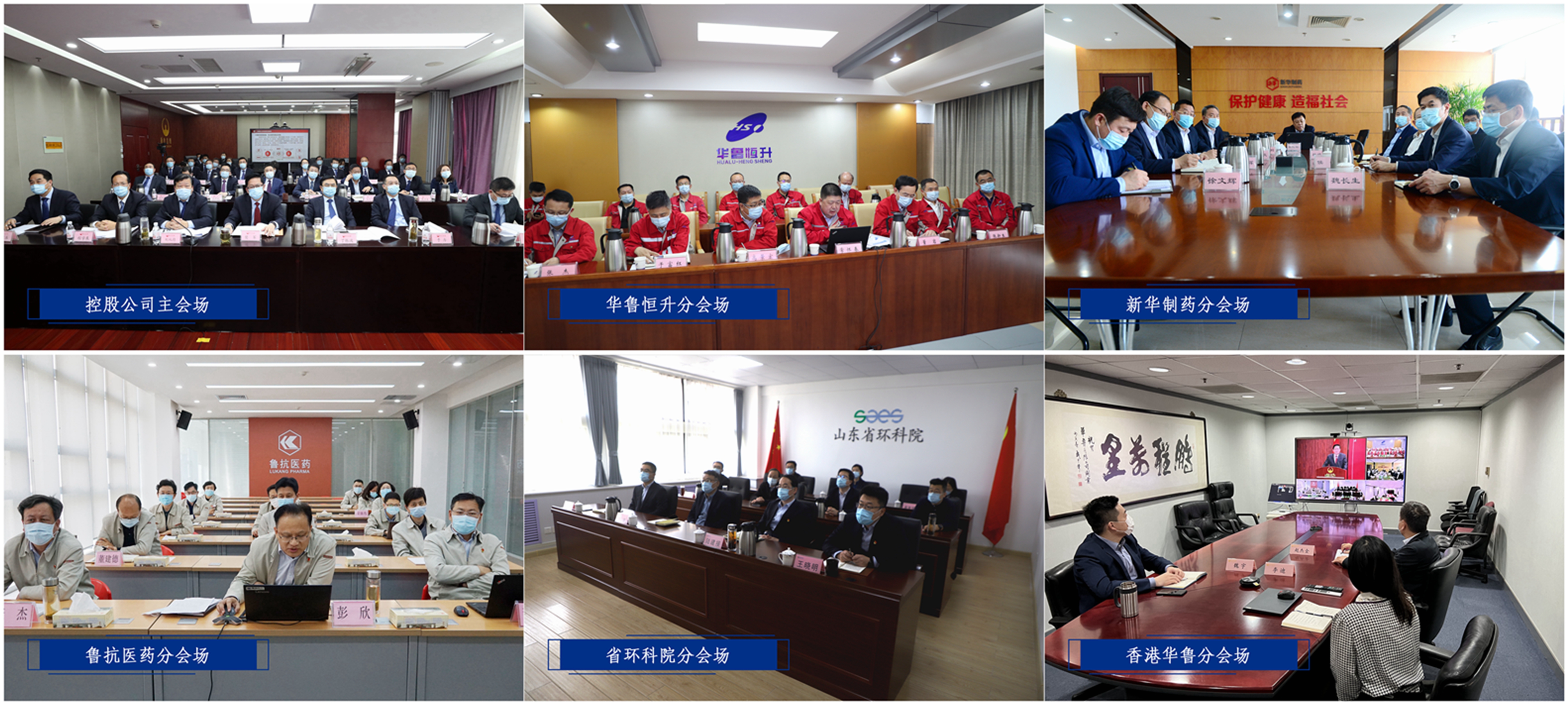 會議采取視頻方式,設立主會場和華魯恒升、新華制藥、魯抗醫藥、省環科院、香港華魯5個分會場。集團領導,各部室主要負責人,省環科院、香港華魯、山東華魯、華魯投資有關負責人在主會場參會,分會場所在公司班子成員、董事會秘書及辦公室、財務部、安全、環保、質量等部室負責人在各自分會場參會。