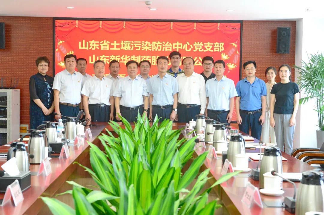 為深入貫徹落實習近平生態文明思想,充分發揮黨建引領作用,著力構建“政企合作”新格局,推動黨建和業務工作深度融合,6月19日,山東省土壤污染防治中心主任蕭大偉帶領土壤部、地下水部及省環科院土壤與地下水修復部有關負責同志一行在淄博生態局副局長賈士龍的陪同下到新華制藥開展“一支部聯系一企業”黨建共建活動,并對新華制藥在土壤污染治理過程中的難點問題進行幫扶指導。新華制藥董事長、黨委書記張代銘,黨委副書記、紀委書記、工會主席徐列,副總經理徐文輝及相關部室負責人出席活動。