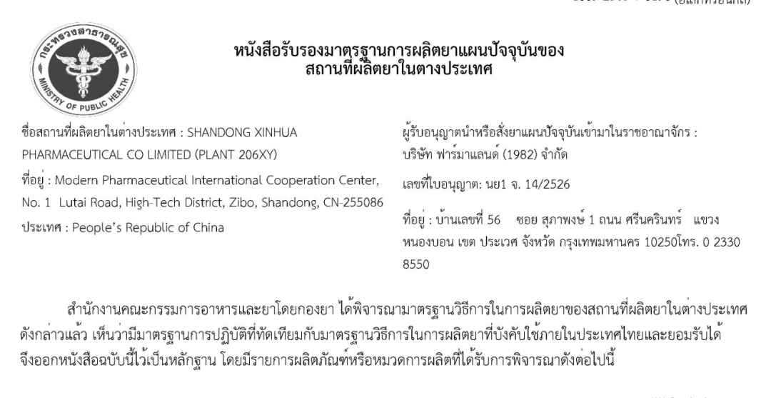 據世衛組織統計,泰國目前人口為7,000萬,預計2022年,泰國藥品市場價值為2330-2380億泰銖(約合RMB 423億元),增長幅度有望達到3-5%。此次經過與泰國本土合作伙伴的共同努力,新華制藥現代醫藥國際合作中心口服固體制劑車間獲得泰國FDA所頒發的GMP證書,這將為公司針對泰國市場的系列仿制藥制劑產品的注冊工作掃清障礙,后續只需產品技術審評部分結束后,即可實現產品在泰國市場的上市。