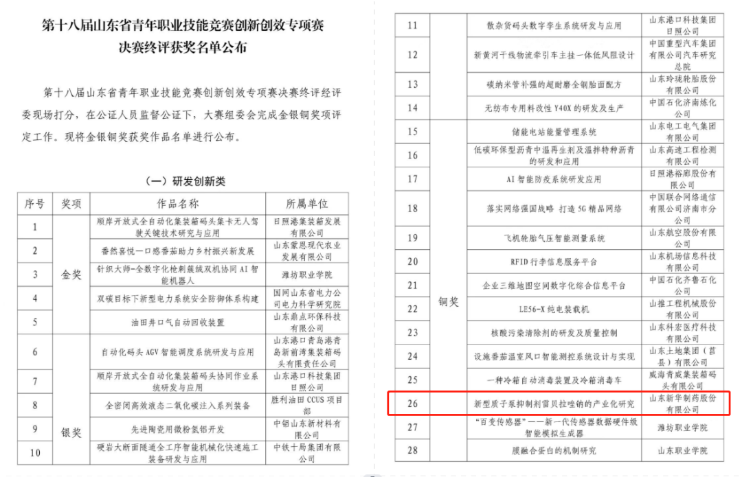 8月3日,第十八屆山東省青年職業技能競賽暨創新創效專項賽決賽在山東港口日照港舉行。新華制藥1項研發創新項目進入決賽終評環節并榮獲銅獎,同步獲得參加全國比賽資格。