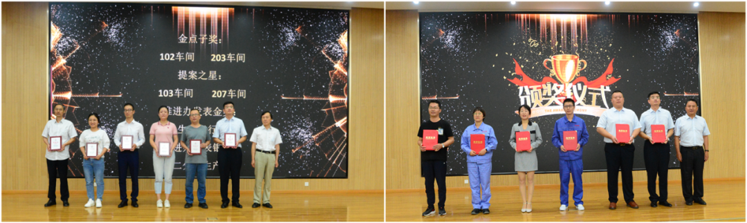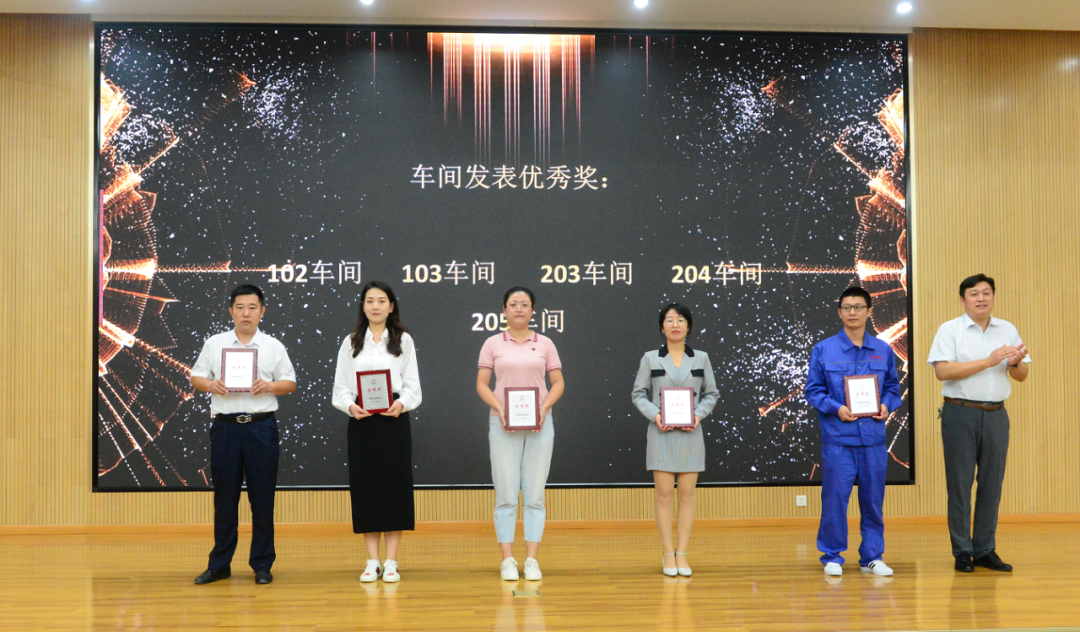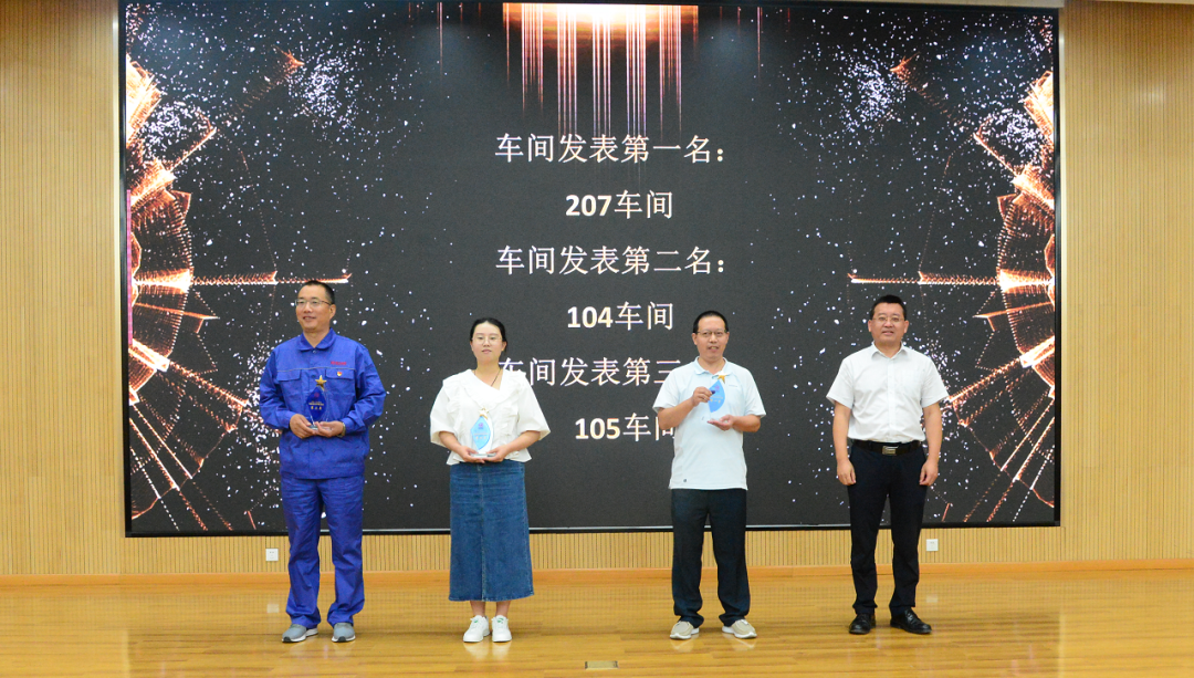 經過激烈比拼,最終207車間、104車間、105車間分別榮獲精益成本革新活動年度評比前三名。會上還評選出4名最佳精益組長、2名最佳指導員和4名提案之星。