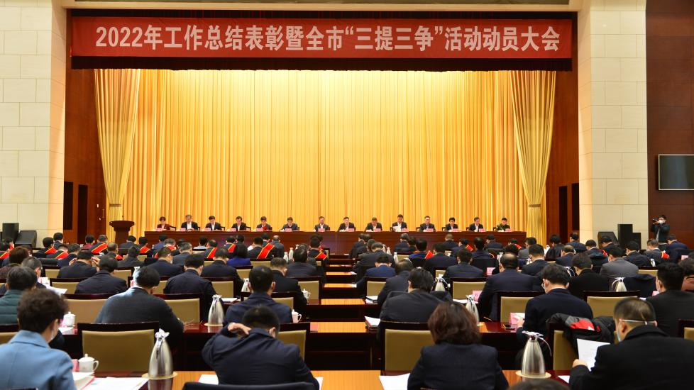 1月28日上午,淄博市2022年工作總結表彰暨全市“三提三爭”活動動員大會在齊盛國際賓館會議中心召開。