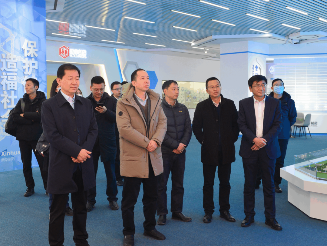 2月24日,重慶市政府副秘書長周青、經濟信息委副主任羅莉、大數據發展局副局長李斌等一行16人到新華制藥參觀考察。淄博市委常委、副市長宋振波,新華制藥黨委書記、董事長賀同慶,黨委副書記、董事、總經理徐文輝陪同參觀并參加座談。