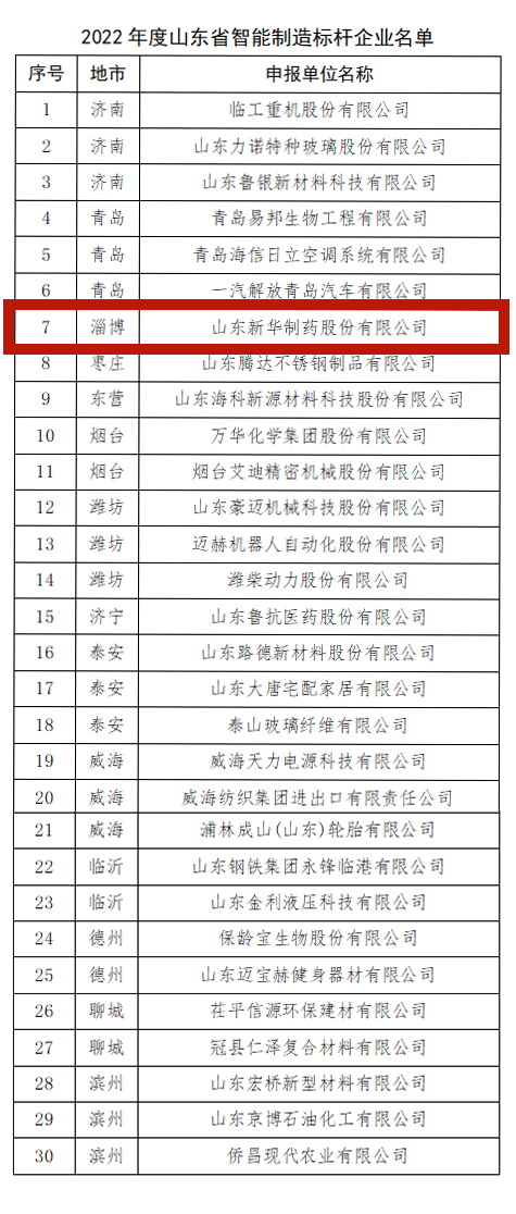 近日,山東省工業和信息化廳公布了2022年度山東省智能制造標桿企業名單,新華制藥成功入選。