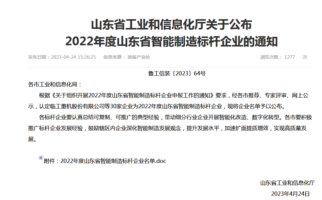 為認真落實省委、省政府《先進制造業強省行動計劃(2022-2025)》和《山東省智能制造提質升級行動計劃(2022-2025年)》,進一步完善智能制造多維覆蓋和梯次培育體系,加快全省制造業數字化轉型,山東省工業和信息化廳于今年2月組織開展了2022年度山東省智能制造標桿企業申報工作,經過企業申請、市級推薦、專家評審等程序,認定新華制藥等全省30家企業為省級智能標桿企業。