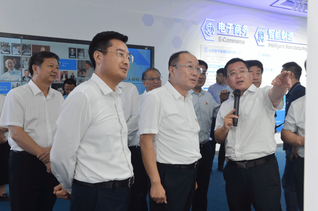賀同慶向李濤等各位來賓詳細介紹了新華制藥的發展情況,重點匯報了公司的園區建設、科研創新、主要產品、質量管控、國際合作和黨建工作情況,并向全省藥監系統對新華制藥發展給予的關注和支持表示衷心的感謝。
