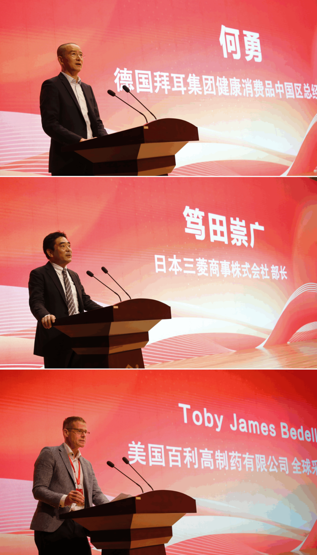 拜耳健康消費品中國區總經理何勇、三菱商事生物精細化工部部長篤田崇廣、百利高全球制劑采購總監Toby James Bedell分別分享了與新華制藥合作的美好故事,并對未來的發展進行了展望。