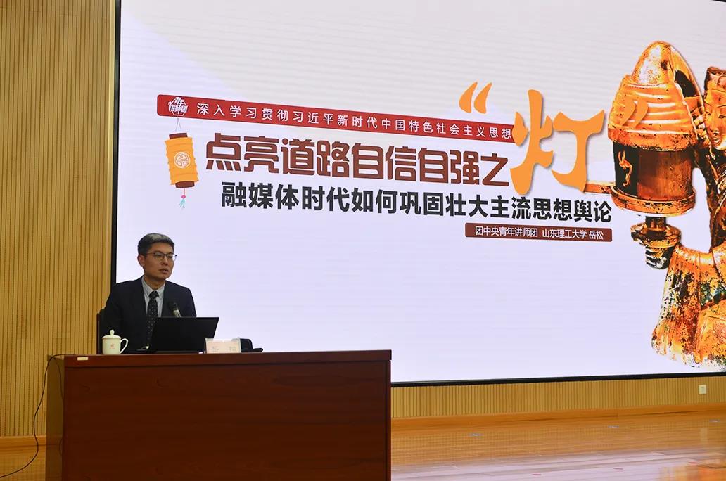 岳松教授以《融媒體時代如何壯大主流思想輿論》為題,圍繞“三個變量:融媒體時代宣傳工作的誤區”“五福自畫像:描繪當代中國青年受眾的身心特質”“四個錨點:從‘迎合’青年到贏得青年”三個方面,用青年職工喜聞樂見的方式,為大家講授了一堂內涵豐富的報告,既有理論高度,又有現實指導意義,為公司黨建、宣傳、青年等各項工作帶來了新思路、新方法,參訓學員們紛紛表示收獲頗豐、受益匪淺。