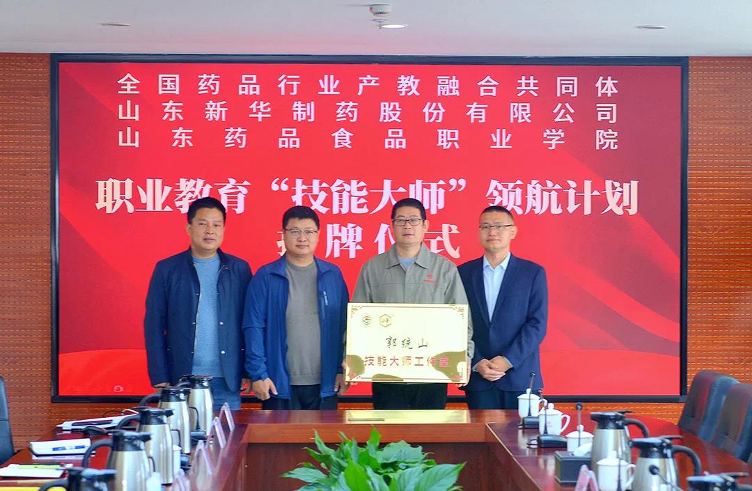 郭統山“技能大師”工作室由新華制藥與山東藥品食品職業學院聯合建立,近期入選山東省教育廳、山東省財政廳、山東省工業和信息化廳聯合實施的首批職業教育“技能大師”領航計劃。工作室依托全國藥品行業產教融合共同體,按照“政校企共建、周期式培養、師徒制管理”的方式運行,將在三年建設期內,通過大師育匠、技能傳承,培養一批高技能師資和技術技能人才;通過大師領銜、協同創新,研發一批藥品生產產學研用合作創新項目;通過大師育人、一體培養,提高藥品生產高素質技能技能人才培養質量,服務職業教育高質量發展。