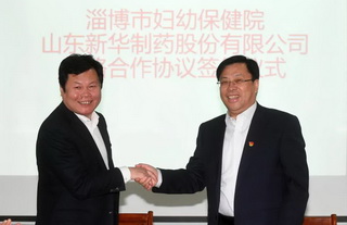 新華制藥董事長、黨委書記張代銘與淄博市婦幼保健院院長、黨委書記張立新共同簽署全面戰略合作協議。淄博市政府副秘書長王希森,淄博市衛生健康委副主任劉觀湘,山東新華制藥股份有限公司副總經理王小龍,新華制藥副總經理賀同慶,淄博市婦幼保健院副院長王忠德,淄博市婦幼保健院黨委委員、紀委書記李冬梅,淄博市婦幼保健院黨委委員、工會主席李娟等相關領 導、嘉賓在淄博市婦幼保健院新院區出席了戰略合作簽約儀式。