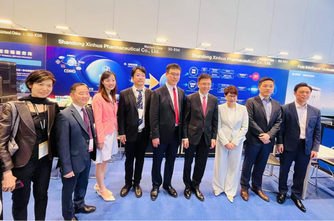 展會期間,山東省科學技術廳副廳長潘軍,齊魯工業大學 (省科學院) 黨委書記王英龍,淄博市科技局黨組書記、局長熊欣等領導蒞臨新華制藥展位進行了參觀指導。潘軍廳長對新華制藥在80年發展歷史中的創新發展,取得的科技創新成果表達了高度評價,希望新華制藥站在醫藥行業的前沿領域,為廣大百姓研制出更多優質藥、放心藥,并肯定了新華健康在“互聯網+醫療健康”和醫美領域的前瞻布局,作為大健康業務的重要板塊,以互聯網和健康產業為推動,必將為新華制藥提供更強的發展動力。